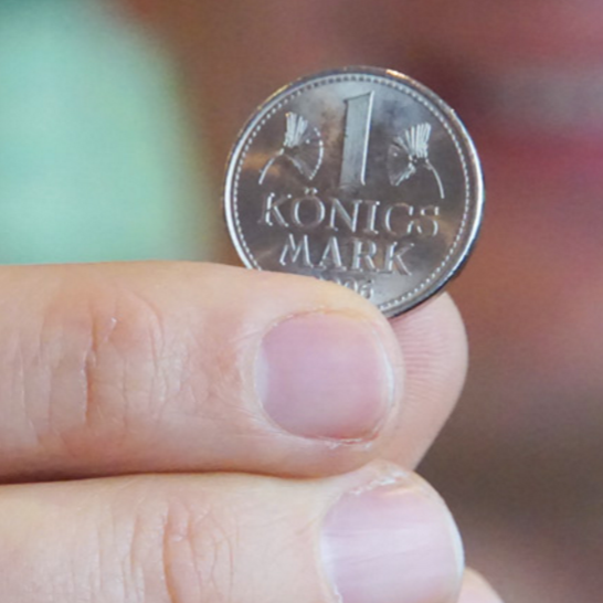 Prägung von König’s Mark bei der Einführungsfeier mit dem historischen Fallhammer.