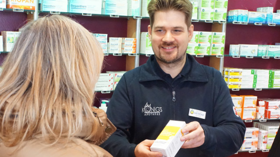 „In König’s Apotheke ist der Kunde König“ – dieser Satz ist weit mehr als ein Wortspiel für uns, wir leben ihn jeden Tag. Die Gesundheit des Menschen steht im Mittelpunkt unserer Arbeit, vielen Kunden sind wir langjährige Vertrauenspersonen und erster Ansprechpartner in allen Fragen rund um die Gesundheit. Sie kommen gern zu uns, weil sie von unseren Leistungen überzeugt und sich bei uns wohlfühlen.