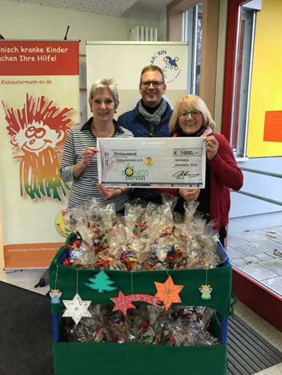 Verantwortung zu übernehmen ist für uns selbstverständlich. Gegenüber unseren Mitarbeitern und Kunden, und natürlich für unser Handeln und Tun als Apotheke. Doch auch zur positiven Entwicklung der Gesellschaft wollen wir unseren Teil beitragen. Vor allem dort, wo wir unser Umfeld beeinflussen können. Wir tun dies seit Jahren durch Spenden an Kindergärten und gemeinnützige Einrichtungen, gemeinsam mit zahlreichen Partnern aus der fränkischen Region. Die König’s Apotheke spendet über 3.300€ an Kinder aus unserer Region! Aufgrund der hohen Spendenbereitschaft unserer Kunden waren Ende 2014 die Sparschweine wieder prall gefüllt mit König’s Mark.