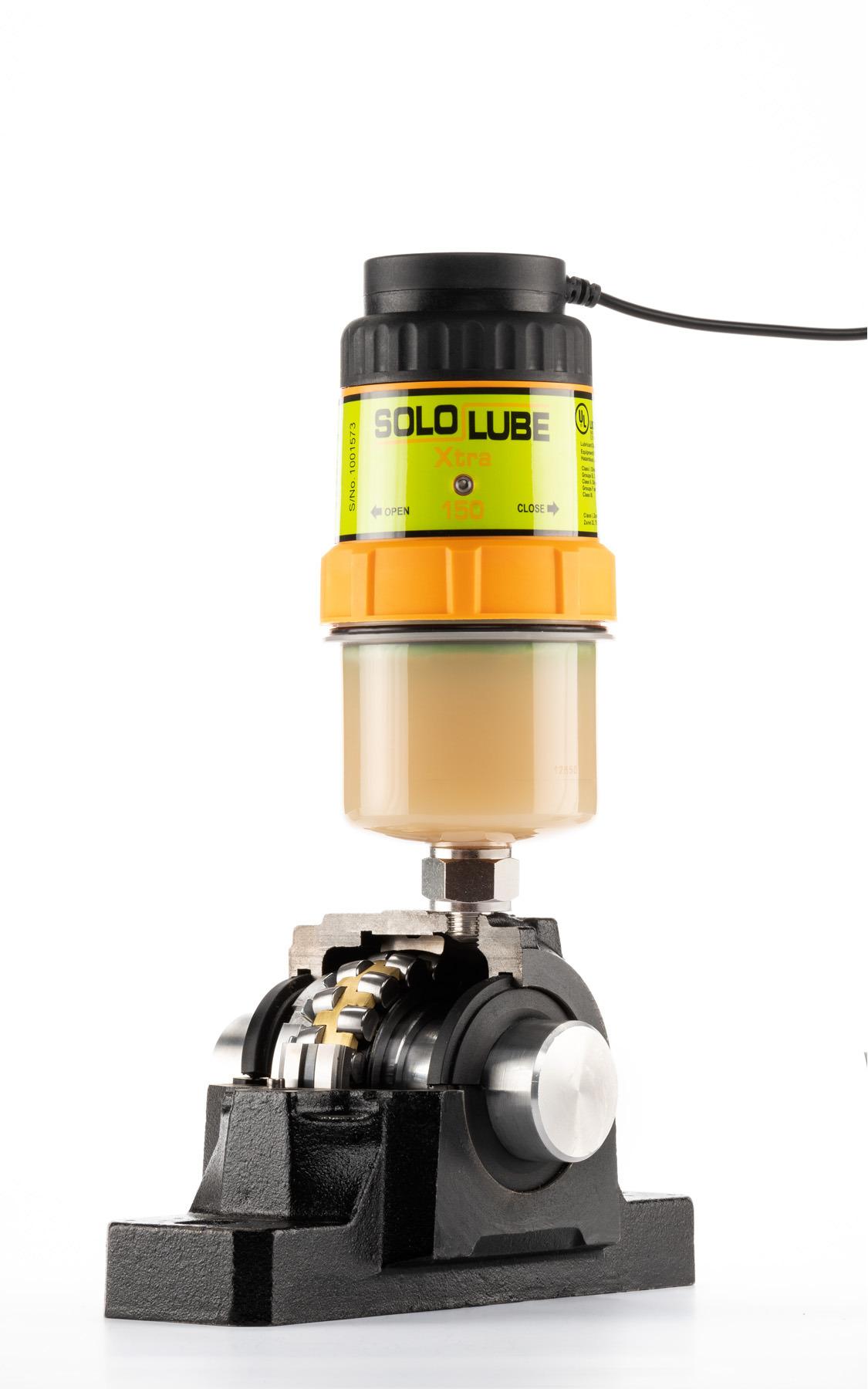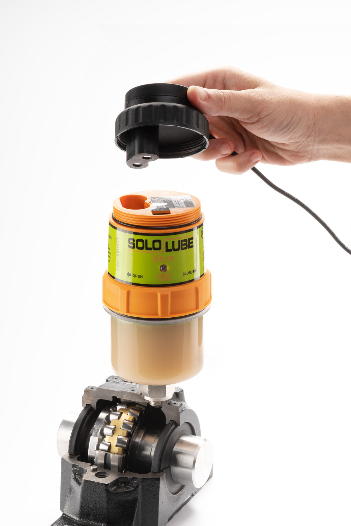 Der Sololube Schmierstoffgeber besteht aus einem robusten und zugleich sehr präzisen Antriebsmotor, einer leistungsfähigen Hochleistungsbatterie (6V-Li-Batterie) sowie einer austauschbaren Schmierstoffkartusche. Die Antriebseinheit lässt sich mehrfach wiederverwenden. Sololube wird zur Einzelpunktschmierung von Wälz- und Gleitlagern, offenen Getrieben, Zahnstangen und Ketten eingesetzt.