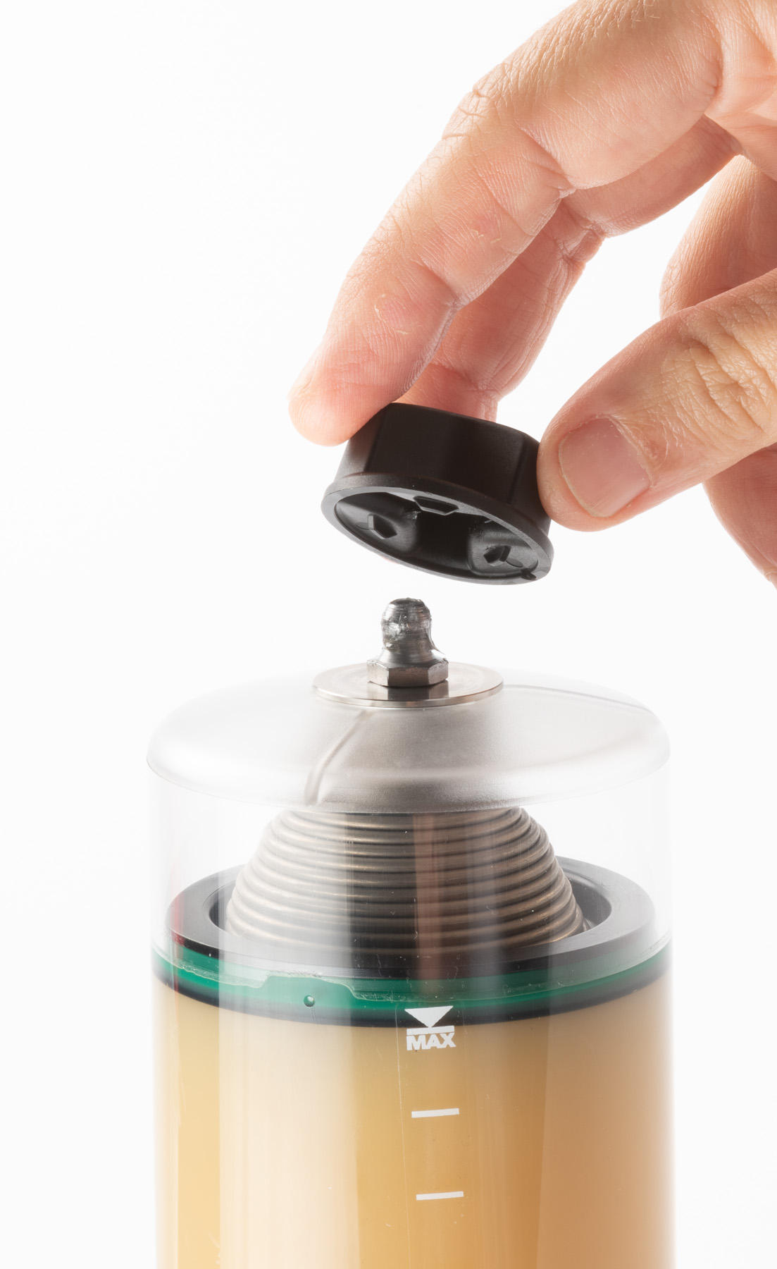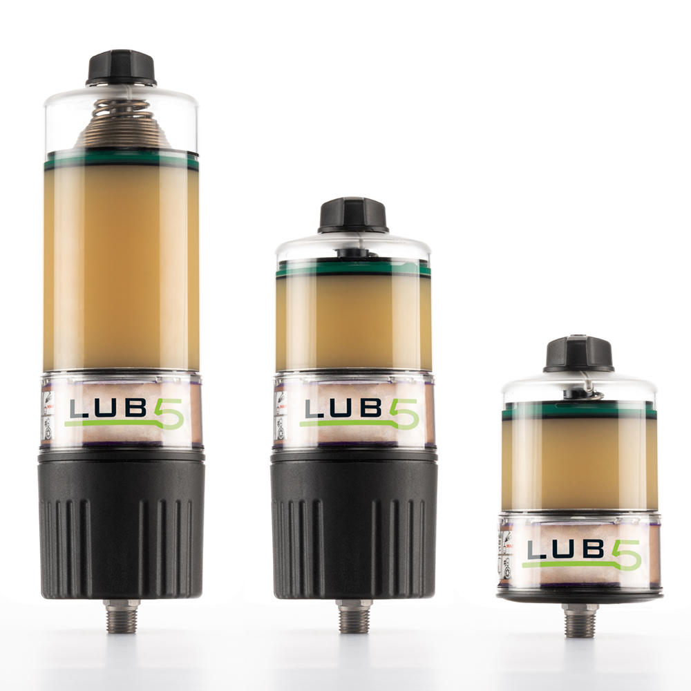 Lub5 ist ein elektromechanischer, wiederbefüllbarer Schmierstoffgeber für die Schmierung einzelner Schmierstellen mit Öl oder Fett. Der Schmierstoffgeber ist für autarken Betrieb konzipiert, da die Energieversorgung durch ein Batteriepack erfolgt.
